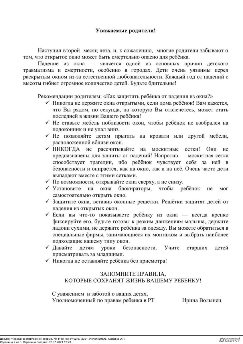Хөрмәтле әти-әниләр, балаларның тәрәзәләрдән төшү очракларын кисәтү турындагы белешмә белән танышуыгызны сорыйбызны ...