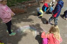 Нашим воспитанникам стало мало листа бумаги, творческие души детей захотели развернуться во… весь асфальт! Вспомнив про цветные мелки, скучно-серые дорожки превратились в холст, на котором детская фантазия не знала границ!