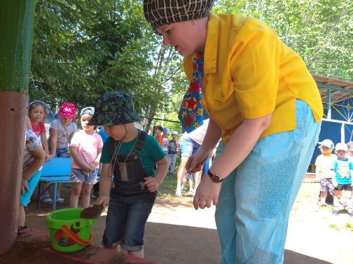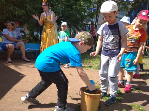 Сегодня день в детском саду был посвящён играм с песком. В гости к детям пришли сказочные герои: Песочная фея и Незнайка. Они зарядили детей отличным настроением и научили играть в увлекательные игры с песком.
