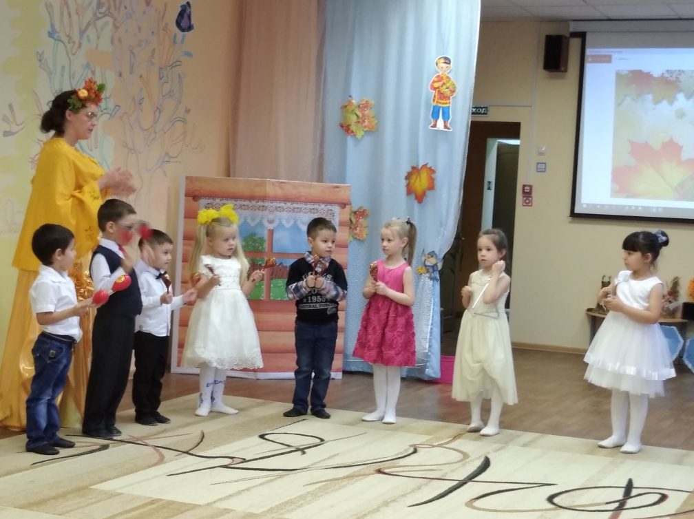 На улице пасмурно и холодно, а у нас в музыкальном зале уютная, дружеская и веселая атмосфера. В гости к воспитанникам второй младшей группы пришли тучка и солнышко. Они играли с детьми в весёлые игры, пели и танцевали. В конце праздника «Осень» угостила детей своими дарами: красными наливными яблочками! Все дети остались довольными и счастливыми! А для наших, воспитателей, это самое главное.
