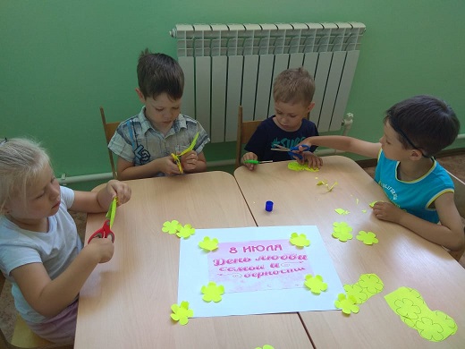 В дошкольном возрасте детям уже можно рассказывать о дружбе, любви, преданности. День семьи в нашем детском саду прошёл в форме краткосрочного проекта для дошкольников. Итоговым мероприятием проекта стал выпуск стенгазет «Ромашка- символ любви, семьи и верности».