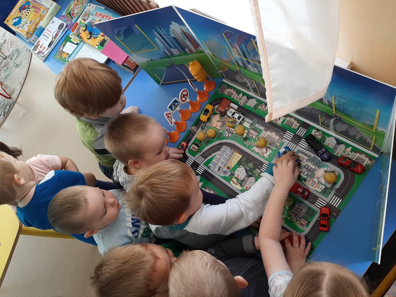 23 сентября в нашем детском саду прошел Единый день безопасности дорожного движения. В течение дня педагоги детского сада провели мероприятия по обучению детей правилам дорожного движения: дети рассматривали иллюстрации на тему «Правила дорожного движения наши помощники!», отгадывали загадки о знаках дорожного движения, видах транспорта, играли в подвижные игры «Шоферы на машинах», «Красный, желтый, зеленый!», проведена НОД «Наш помощник — светофор» и «Пешеходный переход». В каждой группе были проведены консультации и беседы с законными представителями воспитанников по профилактике детского дорожно – транспортного травматизма, а маленькие воспитанники вручили своим родителям памятки по предупреждению опасностей на дорогах. Фото1, Фото2, Фото3, Фото4, Фото5, Фото6, Фото7.