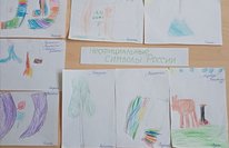 Сегодня в старшей группе организована выставка детских рисунков, приуроченная к предстоящему празднику Дню России. После бурного обсуждения тематики рисунков, дети совместно с воспитателями решили придумать неофициальную символику своей страны. У детской фантазии не было границ! На белых листах выросли и стройные березки, и настоящие русские валенки, и всеми любимый Мишка-косолапый и русский музыкальный инструмент- балалайка.
