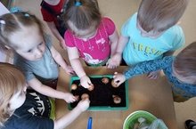 Вместе с воспитателем дети посадили лук в пластиковые контейнеры. Малыши очень старались делать все аккуратно.