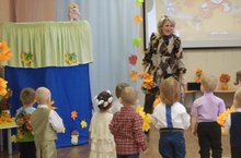 Сегодня в детском саду стартовали осенние утренники, и по традиции их открыли самые маленькие наши воспитанники. Благодаря совместным усилиям воспитателей Фаттаховой Н.Н., Абдуллиной Г.Н. и музыкального руководителя Матвеевой Л.В., дети первой младшей группы окунулись в мир кукольного театра и даже стали помощниками главного героя сказки -ёжика, который потерял осень. Малыши танцевали с листочками и внимательно следили за героями сказки, которым удалось вернуть золотую осень, а она, в свою очередь, отблагодарила ребятишек, подарив им корзинку с яблоками.