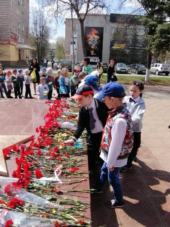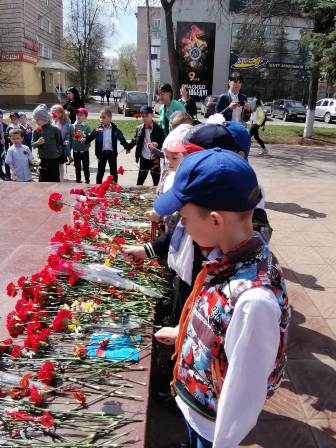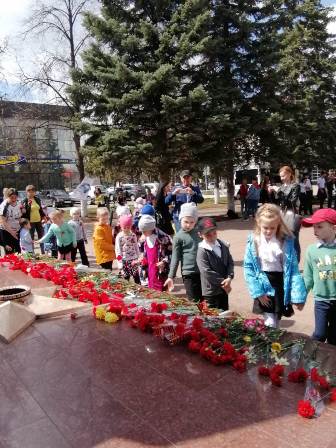 8 мая прошёл торжественный праздник, посвящённый это великой дате. Дети подготовили стихи, песни, сценки о военных годах, исполнили танец «Ах, эти тучи в голубом…», почтили память павших на войне «Минутой молчания». В завершении праздника воспитанники старшей и подготовительной группы совершили экскурсию на «Аллею славы» и возложили цветы к памятнику «Войну – освободителю».