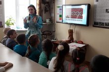 “Балалар һәм үсмер балалар китап атналыгы” кысаларында, балаларда сәнгатькә, туган як традицияләренә мәхәбәт һәм кызыксынучанлык тәрбияләү максаты белән мәктәпкә хәзерлек төркеме балалары туган якны өйрәнү музеена бардылар. Лектор-экскурсовод Рогожина Н.Г., чуваш, мордва, татар һәм русс халкы орнаметларына хас төсләр, аларның төрләре белән танышытып үтте. Йомгаклау өлешендә, балалар орнаметларны үзләре ясап карадылар.