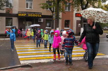 совместно с воспитателями посетили перекрёсток. Соблюдая все правила ДДТ, дети прошли по пешеходному переходу на другую сторону дороги.