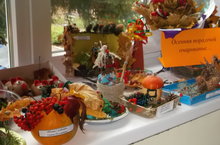 В детском саду проходит выставка на тему: «Осенняя пора, очей очарованье…» Огромное спасибо родителям, которые проявили фантазию, творческий подход и индивидуальность в разработке и исполнении поделок из овощей, фруктов и природного материала.