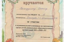 С целью выявления, развития интеллектуальных математических способностей проведена муниципальная олимпиада среди детей старшего дошкольного возраста. Х.Данил, воспитанник подготовительной к школе группы, принял участие в данном мероприятии. Он продемонстрировал достойные результаты и хорошую подготовку. Поздравляем Данила и желаем дальнейших успехов!