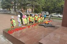 Праздник 9 Мая – это праздник Великой Победы. В далёком 1941 году вся страна встала на защиту Отечества и смогла отстоять право на жизнь под мирным небом. В день Победы каждый из нас особенно ярко чувствует гордость за свою историю. В преддверии праздника наши воспитанники разновозрастной группы возложили цветы в знак памяти погибшим у Вечного огня. Педагоги с гордостью напомнили ребятам имена героев ВОВ, рассказали об их подвигах. Дети с огромным удовольствием исполнили стихотворения военных лет.// 9 Май бәйрәме - Бөек Җиңү бәйрәме. 1941 елда бөтен ил Ватанын яклап чыкты һәм тыныч күк астында яшәү хокукын саклап кала алды. Җиңү көнендә безнең һәрберебез үз тарихыбыз өчен горурлык хисләре кичерә. Бәйрәм алдыннан төрле яшьтәге балалар мәңгелек ут янында һәлак булганнар истәлегенә чәчәкләр салдылар. Педагоглар, горурланып, балаларга Бөек Ватан сугышы геройларының исемнәрен искә төшерделәр, аларның батырлыклары турында сөйләделәр. Балалар сугыш еллары шигырьләрен яратып башкардылар//