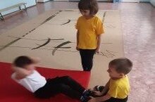 Ребята 6-7 лет приняли участие в сдаче нормативов: прыжки в длину с места, метание теннисного мяча в цель, поднимание туловища из положения лежа на спине, бросок мяча двумя руками из-за головы (1 кг). Дошкольники показали отличные результаты и были награждены грамотами МБДОУ «Детский сад № 18» // 6-7 яшьлек балалар нормативларны тапшыруда катнашты: урыннан сикерү, теннис тубын максатка ыргыту, аркада яткан килеш гәүдәне күтәрү, баш артыннан ике куллап туп ыргыту (1 кг). Балалар бик яхшы нәтиҗәләр күрсәттеләр һәм “18 нче балалар бакчасы” МББМУ грамоталары белән бүләкләнделәр