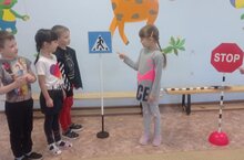 В подготовительной к школе группе прошло занятие по правилам дорожного движения «Осторожно, улица!», развлечение «Внимание, дорога!», с целью уточнить представления детей о правилах поведения на улице; закрепить понятия: «пешеход», «пешеходный переход», «тротуар». В разновозрастной группе дети собирали пазлы для знакомства со знаками дорожного движения. // Балаларда урамнарда һәм юлларда куркынычсыз тәртип күнекмәләрен ныгыту максатыннан 13.03-17.03.2023 елларда "яшь җәяүлеләр атналыгы"тематик юл хәрәкәте куркынычсызлыгы атналыгы үткәрелде. Балалар белән "юлда, транспортта, урамда үз-үзеңне тоту кагыйдәләре", "бәла-казалар булмасын өчен", "урамда куркынычсызлык", "юл билгеләре", "транспорт төрләре", "балалар креслосы", "велосипедта, роликларда, самокатларда йөрү"юл хәрәкәте кагыйдәләре турында тематик әңгәмәләр үткәрелде. Әлеге тематика буенча китаплар күргәзмәсе оештырылды, төрле ситуацияләр каралды һәм анализланды. Атна дәвамында без һәр балага юл хәрәкәтендә катнашучыларның, олыларның да, балаларның да билгеләнгән кагыйдәләрне үтәргә тиешлеген җиткерергә тырыштык, шулай ук балаларда урамнарда һәм юлларда куркынычсыз тәртиптә кирәкле күзаллаулар, күнекмәләр һәм күнекмәләр булдырдык. Төркемнәрдә әлеге тематика буенча балалар рәсемнәре күргәзмәсе оештырылды, предмет-үсеш мохитен «Яшь җәяүле» уены, өстәл-басма уеннары белән тулыландырдылар: «юл билгеләре» лотосы, «Транспорт» пазллары, «Өйдә һәм балалар бакчасында укыйбыз» циклыннан «балалар юлында»наклейкалы буяулар. Мәктәпкә әзерлек төркемендә Юл хәрәкәте кагыйдәләре буенча дәрес узды сак булыгыз, урам!, күңел ачу Игътибар, юл!, балаларның урамда үз-үзләрен тоту кагыйдәләре турында күзаллауларын төгәлләү максатыннан; Җәяүле, җәяүлеләр үтүе, тротуар төшенчәләрен ныгыту. Төрле яшьтәге төркемдә балалар юл хәрәкәте билгеләре белән танышу өчен Табышмаклар җыялар.