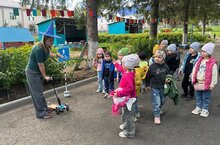Венера Валиахматовна, воспитатель, организовала для ребят подготовительной группы познавательную прогулку, направленную на изучение и закрепление знаний о дорожных знаках и правилах безопасного поведения на дорогах. В ходе экскурсии у дошкольников закрепилось осознанное и безопасное поведение на дорогах города.// Венера Вәлиәхмәт кызы, тәрбияче, балалар өчен әзерлек төркеме оештырды. Ул юлларда юл билгеләре һәм куркынычсыз тәртип кагыйдәләре турындагы белемнәрне өйрәнүгә һәм ныгытуга юнәлдерелгән. Экскурсия барышында мәктәпкәчә яшьтәге балаларда шәһәр юлларында аңлы һәм куркынычсыз тәртип беркетелгән.