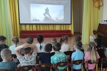 В нашем детском саду прошло мероприятие, посвященное творчеству поэта-героя Мусы Джалиля. В мероприятии приняли участие воспитанники старшей группы. Воспитатель по обучению детей татарскому языку Савочкина Г.З. рассказала об интересных фактах из жизни поэта, о его творчестве, показала презентации и мультфильмы «Красная ромашка», «Черная кошка». / Безнең балалар бакчасында герой-шагыйрь Муса Җәлил иҗатына багышланган чара узды. Чарада зур төркем балалары катнашты. Балаларны татар теленә өйрәту буенча тәрбияче Савочкина Г.З. шагыйрьнең тормышыннан кызыклы фактлар, аның катлаулы биографиясе, иҗаты турында сөйләде, презентацияләр һәм «Кызыл ромашка», «Карак песи» дип исемләнгән мультфильмнар карадылар.