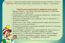 Сайт "Развитие речи" посвящен занятиям с детьми от рождения до 10 лет. Упражнения и игры на развитие речи вы можете использовать для маленьких детей, дошкольников а так же и для младших школьников, выбирая только подходящий уровень сложности задания.