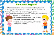 Игра «Кто быстрее всех?» Цели: для развития внимания, логического мышления. Описание: находясь в одной комнате с ребенком, выбрать объект. Пояснить малышу, что тот, кто быстрее всех найдет этот предмет и правильно скажет его название, тот станет победителем. Например, найти квадратные поверхности, игрушки: кукол и животных, столовые приборы и т.д.