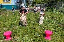 В нашем детском саду уже стало доброй традицией ежегодно проводить весёлый, задорный, поистине всенародный праздник Сабантуй. Проведение народных праздников помогает формированию интереса детей к истории, культуре и традициям народов, воспитанию подрастающего поколения в духе уважения к обычаям представителей разных национальностей. Детям рассказали об истории праздника, а потом они активно участвовали в татарских национальных забавах: перетягивали канат, прыгали в мешках, таскали ведёрки с водой и многое другое.// Безнең балалар бакчасында ел саен күңелле, дәртле, чын мәгънәсендә бөтенхалык бәйрәме Сабантуй уздыру күркәм традициягә әверелде. Халык бәйрәмнәрен уздыру балаларның тарихка, мәдәнияткә һәм халыклар гореф-гадәтләренә кызыксынуын формалаштыруга, үсеп килүче буынны төрле милләт вәкилләренең гореф-гадәтләренә хөрмәт рухында тәрбияләүгә ярдәм итә. Балаларга бәйрәмнең тарихы турында сөйләделәр, ә аннары алар татар милли уеннарында актив катнаштылар: аркан тарттылар, капчык киеп сикерделәр, чиләкләр белән су ташыдылар һәм башкалар.