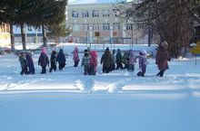 Паникарова Н.Н., инструктор по физической культуре, организовала развлечение «Волшебные узоры» для воспитанников старшей группе. В ходе мероприятия использовались подвижные игры на зимнюю тематику «Два Мороза», «Чай-чай, выручай», «Мороз и печка» и т.д. В заключении при выполнении игрового упражнения «След в след» ребята нарисовали контур елки на снегу, игрушками на ней были сами дети.