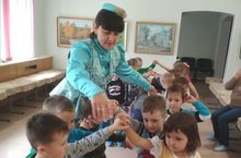 Сегодня сотрудники Краеведческого музея организовали для воспитанников средней группы развлечение «Народные игры». Ребята охотно приняли участие в играх: «Гори, гори ясно!», «Дударь», «Тюбятей», «Ручеек», вспомнили некоторые традиции татарского народа, рассказали об обычаях в своих семьях.