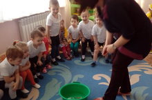 Коршина Ю.Ю. пригласила в гости к воспитанникам 1 младшей группы Курочку с цыплятами. Ребята познакомились с их повадками, особенностями внешнего вида, с большим удовольствием поиграли в подвижную игру «Курица и цыплята», накормили и напоили их – проявили любовь и заботливое отношение к домашним птицам.