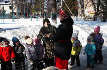 Масленица - древнеславянский праздник, символизирующий проводы зимы и радостное ожидание весны. Люди в эти дни должны веселиться, печь блины. Этот русский народный праздник ежегодно проводится в нашем детском саду и стал уже традиционным и любимым для детей. Наши воспитанники приняли активное участие в проводах зимы. Обряд заключался в чествовании Солнца-Ярилы, что связано с обычаем печь блины. Чтобы всё прошло согласно русским традициям, на праздник были приглашены Скоморохи, Снегурочка и многие другие сказочные герои, которые организовали для детей катание на санках, весёлые игры, гулянья с ряжеными и сжигание чучела зимы. Настроение всеобщего торжества и веселья царило в нашем дошкольном учреждении на протяжении всей праздничной недели!