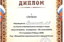 Поздравляем Нуриахметову А.В., музыкального руководителя, с Дипломом 1 степени в Муниципальном конкурсе чтецов, посвященном 100-летию ВЛКСМ, 73-й годовщине Победы в ВОВ, Году объединения национальностей и народов России. Желаем Вам творческих успехов и очередных побед!!!