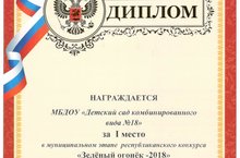 Ура! Поздравляем с достойной победой МБДОУ «Детский сад комбинированного вида № 18» в муниципальном этапе республиканского конкурса «Зеленый огонек-2018» - 1 МЕСТО! Уверенность, боевой настрой, настойчивость, харизма и стремление — помогли дойти до победного пика. Желаем педагогическому коллективу никогда не стоять на месте, всегда также великолепно проявлять себя и смело добиваться в этой жизни всего, что так важно.