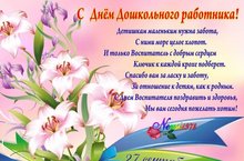 C Днём дошкольного работника! 27.09.2018 С Днём работников детсада! Пусть сбываются мечты, Пусть терпение и отрада Дарят больше теплоты. Пусть успехи и победы К вам приходят поскорей, Чтобы было больше света В глазках ваших малышей!
