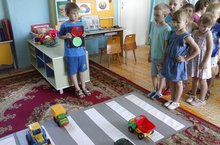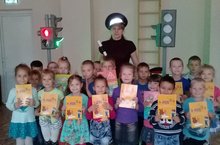 "Дорожная азбука в детском саду" 07.09.2017 В целях пропаганды безопасности дорожного движения и профилактики детского дорожно - транспортного травматизма, в нашем детском саду была проведена встреча с начальником отделения ГБУ "БДД" в Лениногорском районе Зульфией Мударисовной Рахмановой. Она познакомила детей с дорожными знаками, их значением и в игровой форме повторили сигналы светофора
