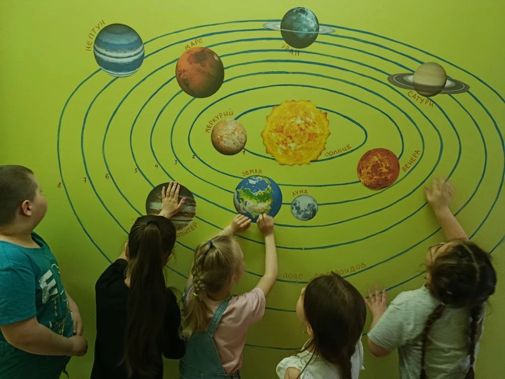 Познавательные занятия и беседы. Воспитатели рассказали ребятам о первом полёте человека в космос, о Юрии Гагарине, Валентине Терешковой и других героях космоса. Дети узнали интересные факты о планетах Солнечной системы, звёздах и созвездиях, познакомились с такими словами, как «скафандр», «спутник», «орбита» и «телескоп».