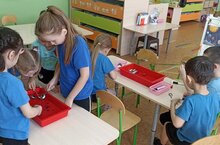 Сегодня в нашем детском саду снова много гостей. Мы принимаем воспитателей из детских садов юго-востока Татарстана - новичков проекта "Татнефть и детство". Байкарова Ольга Юрьевна проводит обучающий семинар по методике обучения грамоте и счету Соболевой Ольги Леонидовны. В нашем детском саду по этой методике работает Софронова Светлана Михайловна, и она также поделилась опытом своей работы с детьми по данной методике.