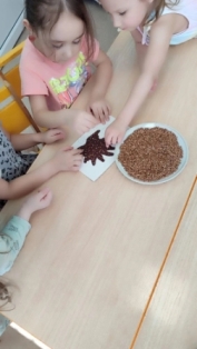В средней группе нашего детского сада прошел тематический день, посвященный гречневой каше. Ребята узнали где растет и как попадает гречка к нам на стол. Познакомились с пословицами и поговорками о каше. В игре - аттракционе на улице закрепили знания из чего готовят гречневую кашу. И в заключении помогли ёжику одеть свои колючки. Ребята знают, что гречневая каша богата различными витаминами и играет большую роль в укреплении здоровья.