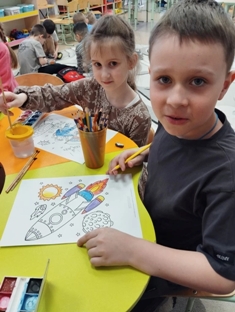 Все работы получились яркими и оригинальными! Ребята с гордостью демонстрировали свои ракеты и делились фантазиями о космических путешествиях. Такие занятия не только развивают мелкую моторику и творческие способности, но и расширяют кругозор, воспитывают интерес к науке и исследованиям.Выставка детских работ украсила раздевалку группы — теперь родители тоже могут отправиться в космическое путешествие вместе со своими детьми.