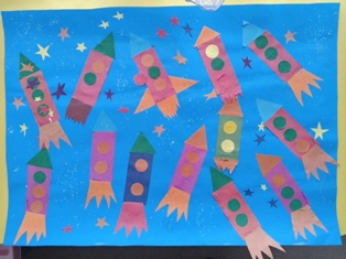 Малыши познакомились с новыми словами: планета, космос, звезды, комета, метеорит. Поиграли в подвижные игры «Собери звезды», «Невесомость». С большим интересом дети занимались конструированием из модулей («Ракета»). Завершением космического путешествия стала художественно – продуктивная деятельность «Ракета летит в космос».