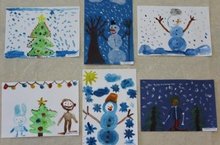 Как необыкновенно выглядит зима в рисунках ребят, представленных на выставку "Чудная зима". Вот снежинки кружатся в воздухе и падают на землю. А на другом рисунке, слышите, шелестит снег, соприкасаясь с веточками. Зима - это красота природы, веселые развлечения. Дошкольники старшей группы (воспитатель: Потапова И.Г.) не забыли изобразить в своих рисунках и Новогоднюю елочку, и забавных Снеговиков. Получилось у них прекрасно!