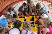Дети средней группы (Воспитатель Бреднева А.В.) закрепили знания правил дорожного движения с помощью макета перекрестка.