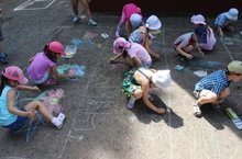 В детском саду прошел конкурс рисунков на асфальте "Есть у солнышка друзья".