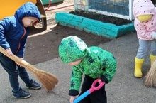 С 1 апреля в детском саду проходит экологический месячник. Коллектив, воспитанники и родители ежедневно наводили порядок на участках, в яблоневом саду. Убирали мусор, сухостой, спиливали сухие ветки. Принять участие в наведении порядка-это прекрасный способ проявить наше желание жить в красивом мире, воспитывать у детей трудолюбие и любовь к порядку и красоте. Ведь порядок должен быть как в человеке, так и вокруг него. И как приятно смотреть на мир, который стал еще красивее, благодаря нашим стараниям. Выражаем огромную благодарность всем родителям, принимавшим участие в благоустройстве территории детского сад.