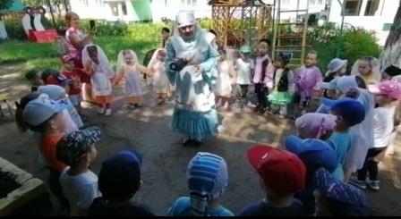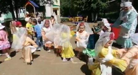 Сбор полотенец - обряд, который проводится у татарского народа перед Сабантуем, и который все люди так ждут. Сегодня, 10 июня и дети (II младшая национальная группа с воспитателями Афандиевой Л.М., Минахметовой З.Р.) нашего детского сада вышли на Сбор полотенец и всех приглашали на праздник Сабантуй. На задорный голос татарской плясовой мелодии, дети ходили по игровым участкам, созывали детей и воспитателей на праздник. С детьми каждой группы играли в национальные игры (“Чума үрдәк, чума каз”, “Кулъяулыгым яшел-яшел”, “Кәрия-Зәкәрия”, “Әйлән-бәйлән”) и пускались в пляс вместе со взрослыми. А взамен, получали подарки для Сабантуя – полотенца для батыра и лучшего скакуна, яйца и деревянные ложки, вёдра и канат для игр и соревнований на Сабантуе. Педагоги объяснили детям о предназначении того или иного подарка.