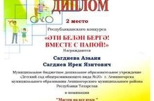 Прошел республиканский конкурс «Вместе с папой» -«Әти белән бергә». Цель конкурса: формирование позитивного отношения к семейным ценностям и традициям, повышение роли отца в современной семье. Семьи наших воспитанников Сагдиевы А. (рук Зиганшина Р.Я., Ихсанова Г.Р.); Вильдановы И. (рук: Афандиева Л.М.); Ягфаровы Я. (рук: Минахметова З.Р.), приняли активное участие в конкурсе , где заняли почетные I, II, III место! Поздравляем наших воспитанников и их пап с призовыми местами. Выражаем благодарность нашим педагогам и родителям за активное участие. Желаем дальнейших успехов!