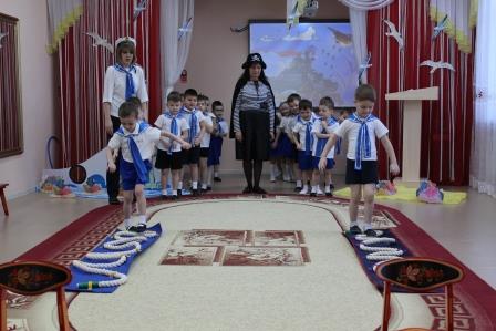 18 февраль көнне балалар бакчасында «Корабта»исемле уен формасындагы бәйрәм узды. Ул төрле эстафеталардан һәм конкурслардан торды, мәктәпкәчә яшьтәге балалар зирәклеклекләрен, җитезлекләрен күрсәттеләр. Балалар ләззәтләнеп, горурланып шигырьләр сөйләделәр, җырлар җырладылар, биеделәр. Сюрпризсыз да булмады, бәйрәм герое “Пиратка” бәйрәмне табышмаклар һәм уеннар белән бизәде.Ә балалар кадерле бабайларына- әтиләренә бүләк итеп, үз куллары белән ясалган, кул эшләре-самолетлар тапшырдылар. Бәхет һәм шатлык бөтен кешене тулыландырды!