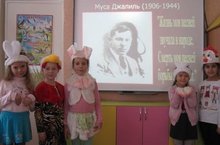 Именно так было названо занятие, проведенное сегодня в подготовительной группе (воспитатель по обучению татарского языка Зиганшиной Р.Я.), посвященное творчеству героя-поэта. Занятие содержало в себе очень много познавательного, в том числе о жизни Мусы Джалиля. В течение занятия дети познакомились с биографией поэта, посмотрели презентацию о его творческой жизни. Больше всего им запомнилось то, что Муса Джалиль был умным и любознательным с раннего детства.