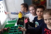 В детском саду объявлен конкурс "Огород на подоконнике". Воспитанники подготовительной группы совместно с воспитателями (Степанова Е.В., Мамышева Л.В.) и младшим воспитателем (Аверьянова Е.А.) принялись за дело. Приготовили различные емкости для рассады, рассыпали в нее землю. Семена бархатцев, которые ребята сами собрали на клумбах осенью, семена овса, пшеницы - всё пригодилось для посадки. Не забыли ребята и про зелень, которая очень полезна в весеннее время. Они посадили лук, укроп и петрушку. Девочки завели специальный "журнал наблюдений" за посевами. Дети решили украсить свой огород: поставили домик и поселили туда бабушку и дедушку. Для хорошего роста растений необходимы тепло, свет и вода. Была сделана красивая аппликация в виде солнышка и тучек с дождем.
