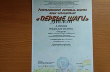 Воспитанники нашего детского сада получили диплом третьей степени Республиканского фестиваля – конкурса юных исполнителей «Первые шаги». Это вокальный ансамбль «Радуга» (музыкальный руководитель Сафарова Гульнара Рашидовна). Наши поздравления!