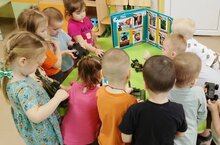 В конце занятия у нас прошла выставка военной атрибутики, мы все попробовали , удивились , что у военных есть рации, а телефонов нет. Когда наши мальчики вырастут, будут защитниками Родины, а девочки будут их лечить.