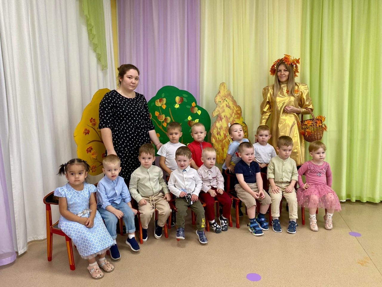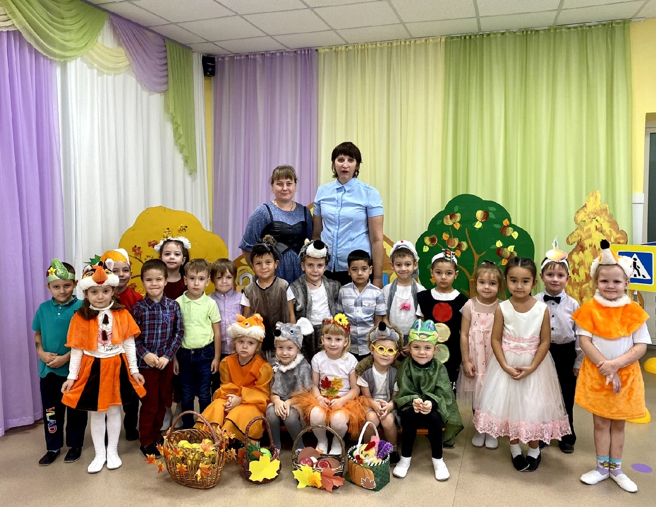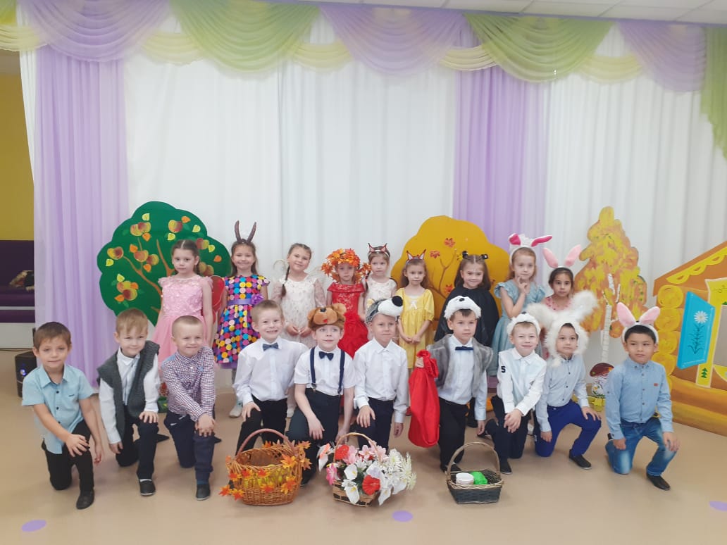 Яшь төркемнәре балалары белән көзге күңел ачу чаралары узды. Балалар рәхәтләнеп уйнадылар, җырлар җырладылар, кунакларны каршы алдылар. Урта төркем балалары Болыт белән очраштылар, ул балаларның күңел ачуларын теләмәде. Әмма зонтик белән уйнау Болытны җиңәргә ярдәм итте. Өлкән төркем шәкертләре юл хәрәкәте кагыйдәләре буенча көзге сәяхәткә киттеләр. Мәктәпкә әзерлек төркеме балалары В.Г. Сутеевның «Алма капчыгы» әкияте мотивлары буенча театраль куелышны күрсәттеләр. Барлык бәйрәмнәр тәмамлангач, юмарт Көз барлык балаларны да алмалары белән бүләкләде.
