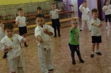 В нашем детском саду функционирует кружок «Каратэ». Руководит кружком замечательный, а главное – действительно увлеченный каратэ человек – Буслаев Виталий Петрович. Благодаря этому виду спорта дети становятся физически сильнее. Упражнения, которые выполняют дети во время занятий, способствуют снятию статического напряжения, улучшению кровоснабжения, улучшению координации движений, повышают стойкость вестибулярного аппарата, закаляют организм, развивают интерес к физическим упражнениям. Ребята, которые посещают занятия каратэ, при встрече друг с другом или своим наставником произносят слово «Ос!», с уважительным поклоном, так же прощаются. «Ос» - это своего рода девиз в каратэ означающий что-то вроде «упорно двигаться к цели». Занятия помогают гармоничному развитию духа и тела, помогают ребёнку лучше узнать себя, испытать новые возможности, укрепить здоровье и получить хороший заряд энергии.