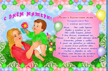 Говорят, что миром правит любовь. Мы любим, нас любят… Иногда взаимно, иногда безответно. Но есть на свете любовь, которая не подвластна ничему: ни времени, ни пересудам, ни забвению. Это любовь матери. Она сопровождает нас с самого первого мгновения на этой земле. Любовь материнскую мы чувствуем еще до своего рождения. Мы вырастаем, уезжаем из родного дома. Но даже на краю земли мы помним, что где-то далеко ждут нас теплые мамины руки и ласковые глаза. Родные наши мамы ! Спасибо Вам за бескорыстную любовь. За Ваше участие и переживания, за беспокойство и заботу. Пусть каждый вечер над Вашим домом зажигается яркая звездочка! А каждое утро в Ваше окошко проникают теплые лучики солнца! Живите долго-долго, будьте здоровы и счастливы!