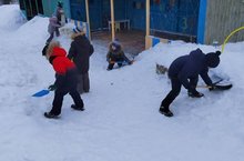 Наблюдение за трудом дворника провела воспитатель подгтовительной к школе группы №2 Вагапова Гульнара Риммовна. В зимний период труд дворника особенно важен, сколько сил и труда вложено в уборку территории от снега. Мальчишки и девченки с энтузиазмом постарались помочь в уборки территории участка от снега.